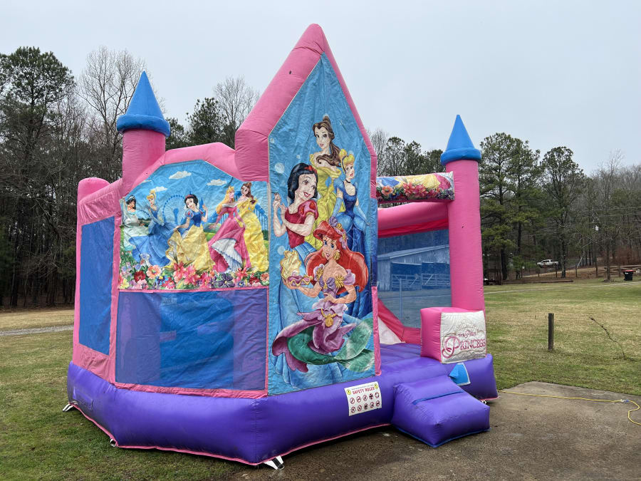 Bring the magic of a royal castle to your backyard with our bounce house rentals in Thomaston, Zebulon, Williamson, Milner, Griffin, Woodbury, Barnesville, Forsyth, and Jackson. Our Princess Bounce House Combo is designed to captivate and entertain for hours, ensuring your event is a memorable one.